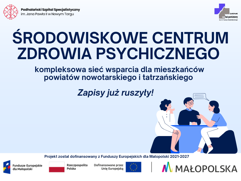 #środowiskowecentrumzdrowiapsychicznego #zdrowiepsychiczne #wsparcie #podhale #szpital #społeczność #nowytarg #FunduszeUE #FunduszeEuropejskie